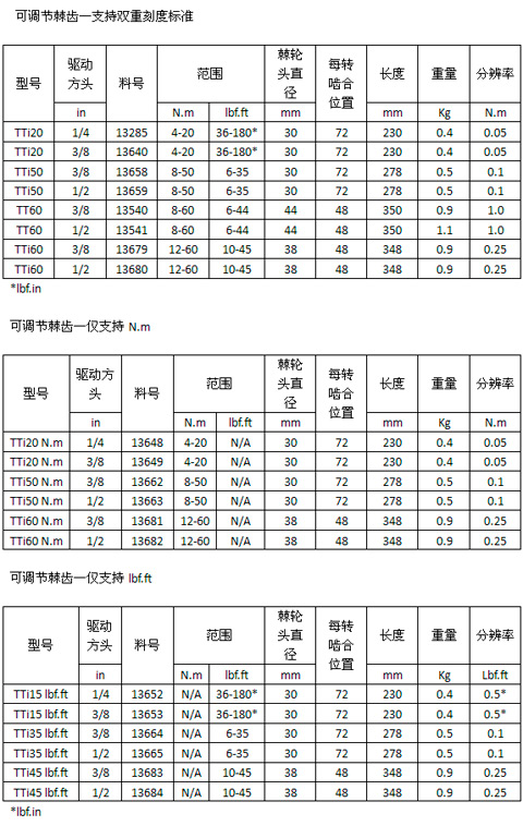 Trutorque Wrench (TT)型號20N.m and 50N.m(15lbf.ft and 40 lbf.ft)